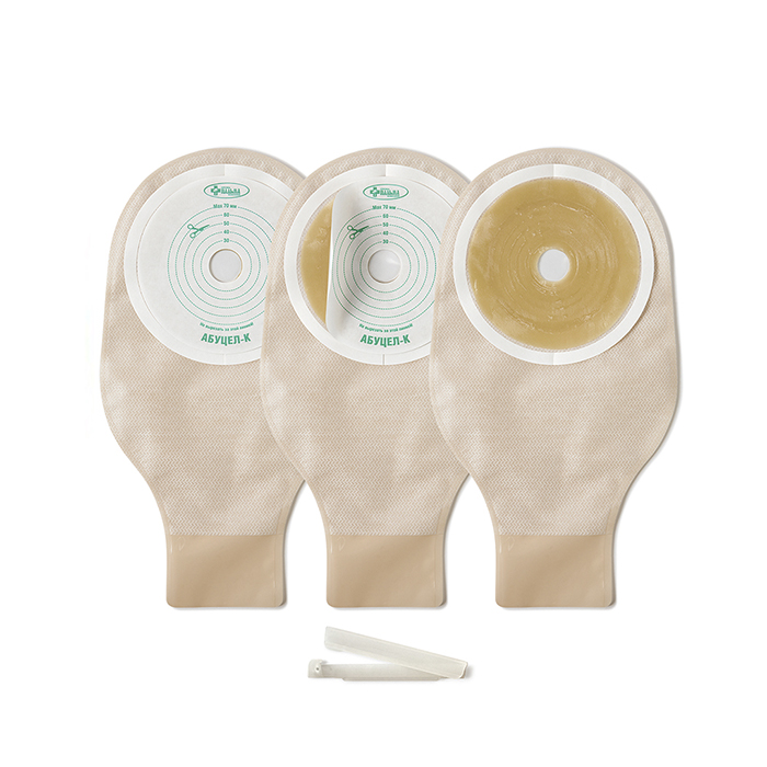 Однокомпонентные дренируемые прозрачные калоприемники АБУЦЕЛ-К №5 для стомы размером 20-70 мм. Прозрачная часть калоприемников позволяет лучше контролировать содержимое, если в этом есть необходимость. Сами же изделия отличаются надежной, прочной и уникальной по своей конструкции системой крепления. Использовать калоприемники можно в течение нескольких дней — их не рекомендуется снимать до тех пор, пока пластина плотно приклеена. Материал мешков не промокает, не пропускает влагу и удерживает неприятные запахи длительное время.