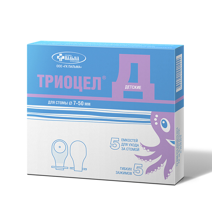 Однокомпонентные прозрачные калоприемники ТРИОЦЕЛ-Д №5 разработаны для детской, очень чувствительной кожи. Клеящаяся часть крепится надежно, не вызывая дискомфорта. Если следовать инструкции, снятие с кожи осуществляется комфортно, без неприятных ощущений. В месте соприкосновения приемника с телом мешок мягкий, что исключает опасность раздражения.