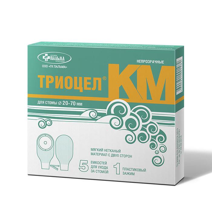 Однокомпонентные непрозрачные калоприемники ТРИОЦЕЛ-КМ №5 подходят для стомы диметром 20-70 мм. Нетканая деликатная подложка с двух сторон мешка калоприемника делает его использование комфортным — без появления опрелостей, раздражения. Пластина с клеевым слоем надежно крепится на коже. Непрозрачные калоприемники этой серии можно использовать длительное время, очищая изделия по необходимости.