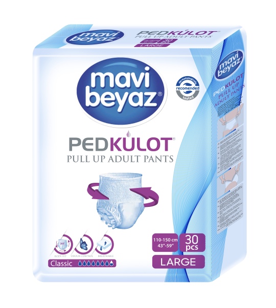 Подгузники-трусы Mavi beyaz (размер L, объем талии 110-150 см) позволяют легко и эффективно справиться с деликатной проблемой — недержанием мочи. Их использование сделает повседневную жизнь полноценной. Подгузники-трусы предотвращают даже минимальное протекание, не уступая по уровню комфорта хлопковому нижнему белью.