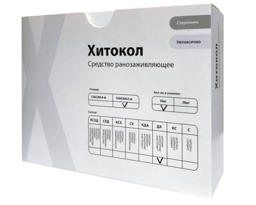 Повязки стерильные Хитокол-ДА, 9x9x0,4 см, 10 шт.