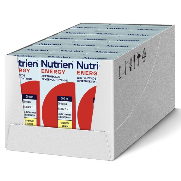 Нутриэн Энергия со вкусом банана — это продукт, предназначенный для диетического питания детей от 3 лет и взрослых. Готовая пищевая смесь имеет жидкую консистенцию, выпускается в тетрапаке объемом 200 мл. Имеет сбалансированный состав и все необходимые для жизнедеятельности витамины, минералы, микроэлементы. Продукт легкоусвояемый, быстро всасывается и не вызывает аллергической реакции. Может использоваться для зондового питания и при использовании гастростомы. Также подходит для самостоятельного приема пищи.