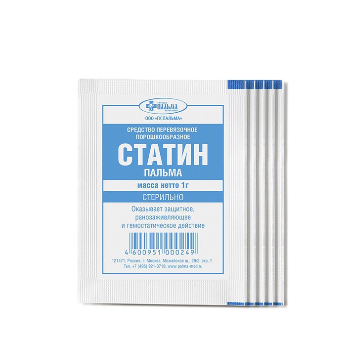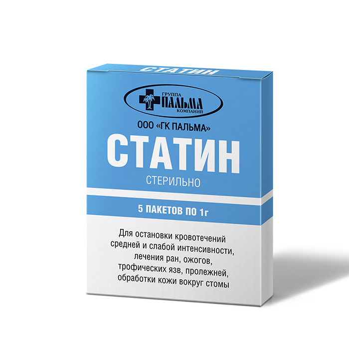 Порошкообразное вещество Статин создано специально для работы с поврежденной и раздраженной кожей. Оно незаменимо при обработке участков рядом со стомой. Гель, который образуется после нанесения порошка, способствует заживлению микротрещин, хорошо останавливает кровотечение. «Статин» применяют и при операциях, в процессе перевязки. После его использования не образуются рубцы.
