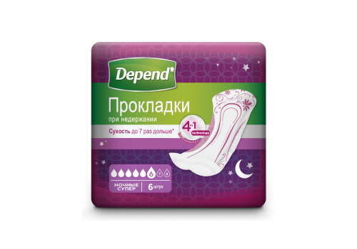 Прокладки Depend Super Night, 6 шт.